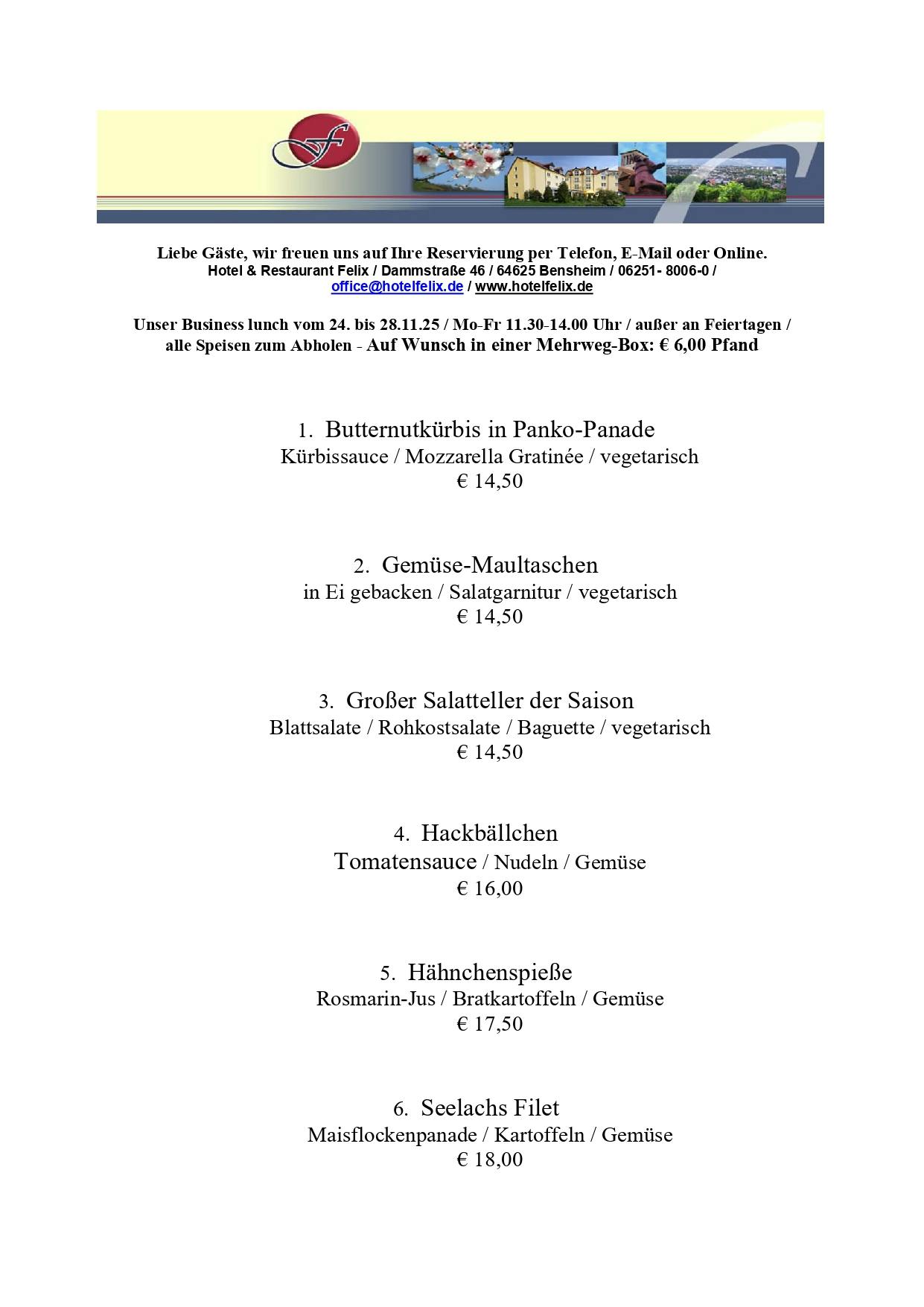 Here you'll find our business lunch, Monday to Friday lunchtime (except on public holidays). Download PDF